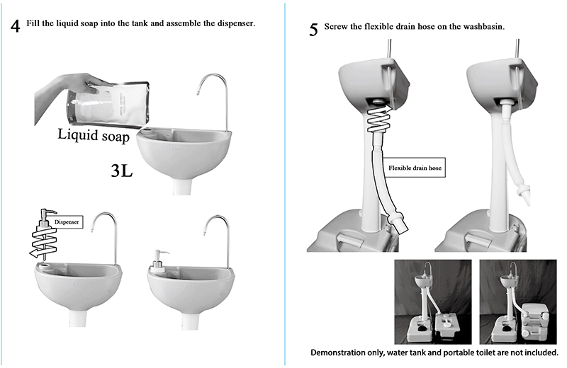- Liquid soap dispenser & towel holder: 3L (0.8 gallons) liquid soap allows for 3000 washes. The foldable rod is pretty convenient to hang towels and toilet rolls, letting you enjoy more convenience outdoors